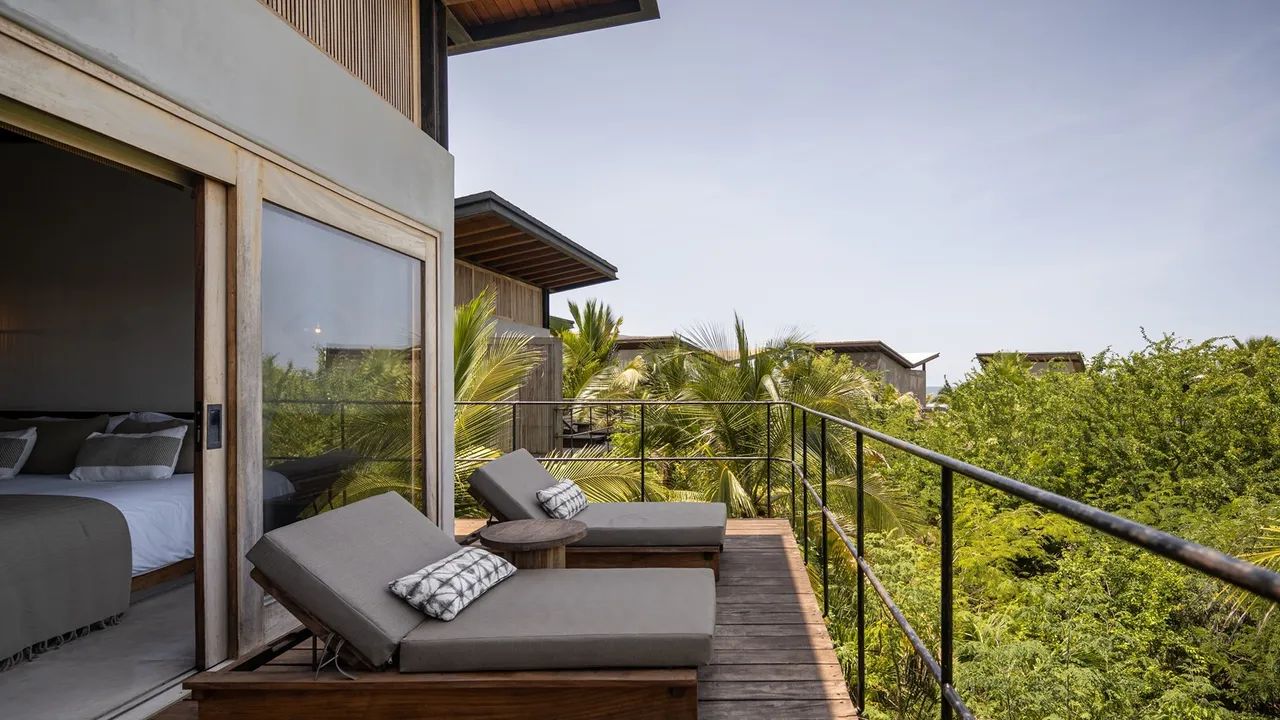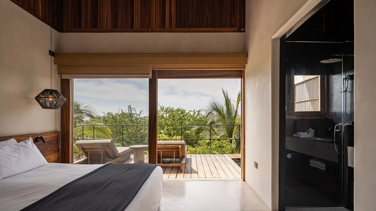 A spacious two-bedroom villa spread across two levels, the H3 model offers a perfect blend of privacy and comfort. Each bedroom features its own ensuite bathroom and private terrace with hammock floors and plunge pools, with the option of ocean or mountain views. The open-plan kitchen and dining area extend onto a stunning wrap-around balcony on the ground floor — ideal for gatherings and enjoying the tropical surroundings. With an additional sofa bed and a third full bathroom, this model is designed for both hosting and peaceful retreats.